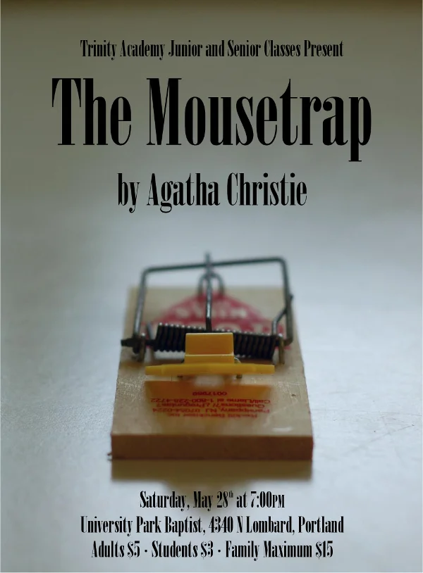 The Trinity Academy Junior and Senior classes will be performing The Mousetrap, a classic murder mystery by Agatha Christie.
