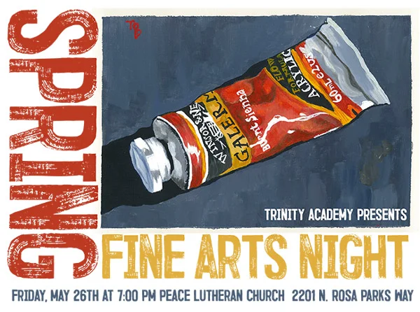 You're invited to our Trinity Academy Spring Fine Arts Night, Friday evening, May 26th, at 7:00 pm. It will be held at Peace Lutheran Church which is located at 2201 N. Rosa Parks Way, Portland. This evening will include performances from our 6th and 7th grade strings, 7th and 8th grade choir, 9th and 10th grade choir, and the Trini-Tones. Artwork will be on display from all of the art classes. This is a wonderful evening to enjoy the beauty created by our students. A reception will follow.